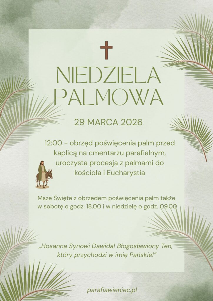 1. Niedzielą Palmową rozpoczynamy Wielki Tydzień, doroczny obchód misterium paschalnego Chrystusa. Błogosławimy dziś palmy, odczytujemy fragment o uroczystym wjeździe Pana Jezusa do Jerozolimy i pragniemy naśladować tłumy, które wiwatowały na Jego cześć. Jak Pan Jezus wszedł do Jerozolimy, tak dziś przychodzi do każdego z nas. Oby nie okazało się jednak, że stoimy w tłumie, który woła: „Hosanna”, a za chwilę będzie wołał: „Na krzyż z Nim!”. Niech udział w dzisiejszej liturgii pozwoli nam wejść głęboko we wszystkie wydarzenia rozpoczętego Wielkiego Tygodnia. Prośmy o łaskę, abyśmy uczestnicząc w nich przeżyli z Panem Jezusem szczery żal za naszą niewierność i nieprawości po to, aby z radością przyjąć dar nowego życia, które ofiaruje nam Zmartwychwstały. Czytaj dalej »